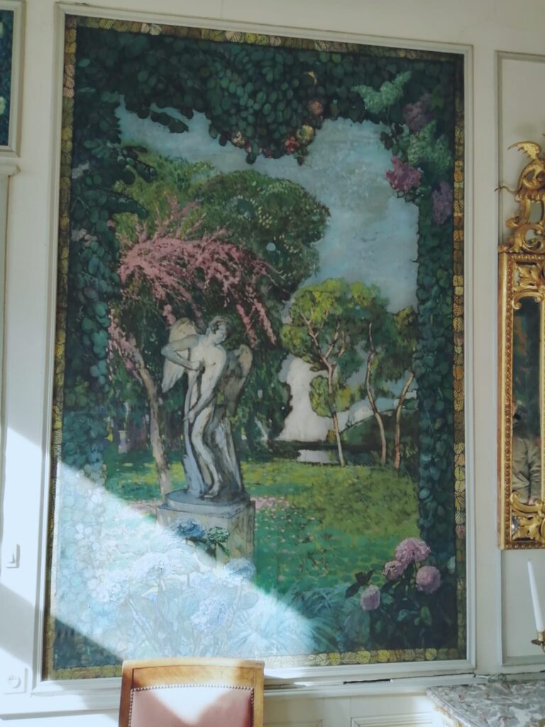 Contrarily, the upper gallery, with its stained glass windows, ornate boiserie, and a — quite apposite — statue of Apollo, has a mystic radiance not unlike the Sainte-Chapelle. All these spaces are open to the public. Occasionally, visitors are also granted access to the town hall’s salle de mariage (marriage room), a luminous, Louis XVI-style space furnished with gilded mirrors and floral-themed impressionistic paintings.
